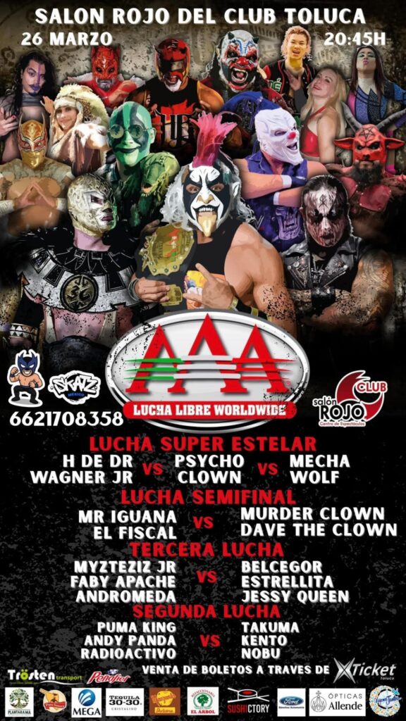 Entre los combates más esperados destaca una lucha de triple amenaza protagonizada por el Hijo del Dr. Wagner Jr., Psycho Clown y Mecha Wolf, tres de las figuras más reconocidas de la empresa. Además, estarán presentes Mr. Iguana y El Fiscal, quienes llegan motivados tras las buenas actuaciones que han tenido recientemente en escenarios internacionales, incluido su paso por eventos relacionados con WWE.
