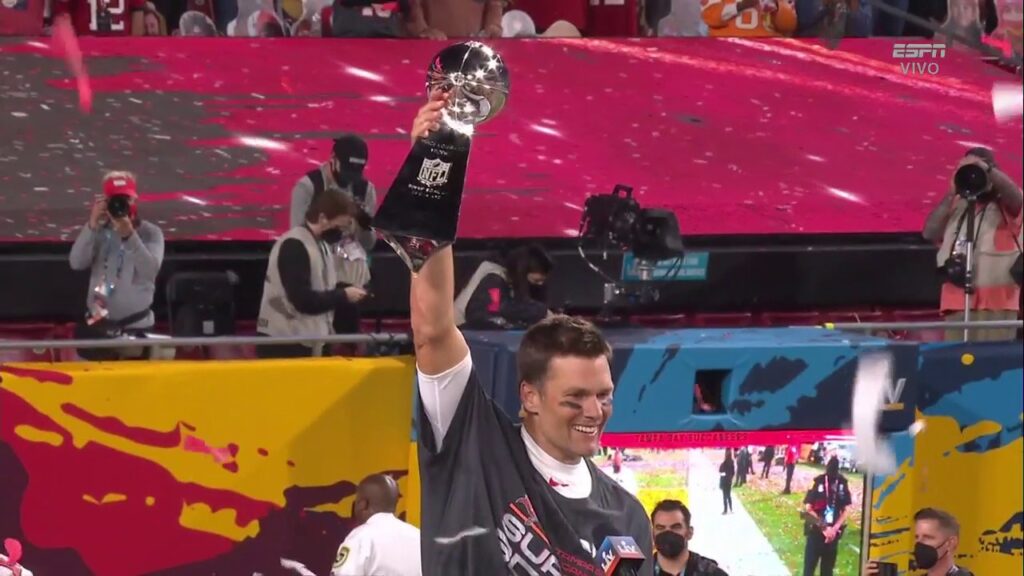 Tom Brady logró marcas incomparables, dentro de ellas se destacan ganar el Super Bowl en 3 décadas diferentes, ser el segundo jugador en ganar un Super Bowl con dos equipos diferentes y llevarse el MVP del Super Bowl en cinco ocasiones diferentes.